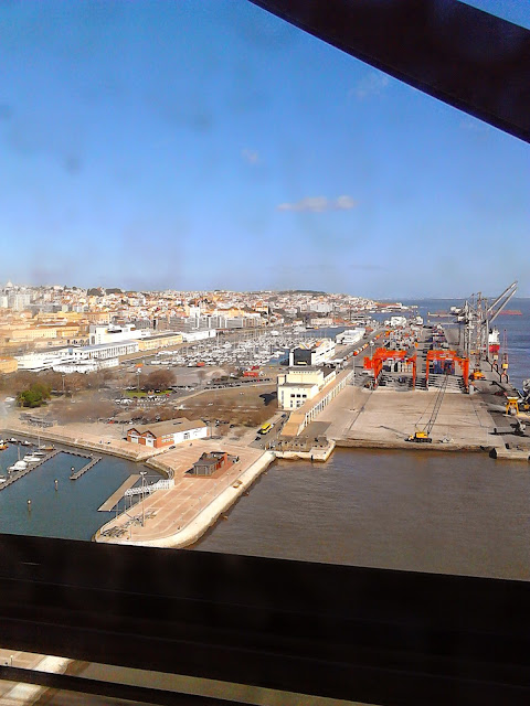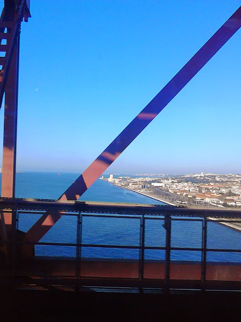 Shot from the 8.24 Alfa-Pendular from Lisbon Oriente to the Algarve, this morning. Looking West towards Belem, Cascais and the Atlantic..