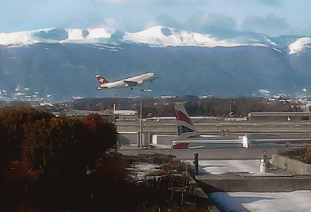 View of French Alps from the top-floor Departure lounge at Geneva Airport on Sunday en route back from Lausanne.